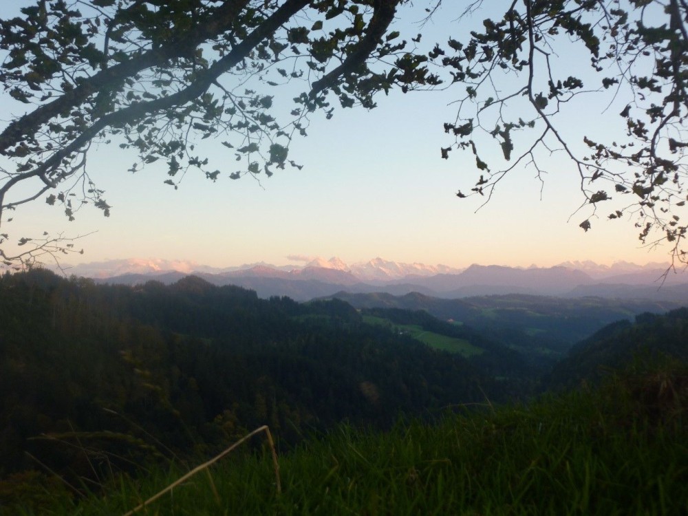 Ab 18.00 Uhr empfangen wir Sie im Kambly Erlebnis, wo Sie einen Emmentaler Apéro mit regionalen Spezialitäten geniessen. Ab 19.00 Uhr nimmt Sie der Wanderleiter, ein ausgewiesener Kenner der Region, mit auf die Vollmondwanderung Trubschachen - Hasenleewald - Bäregghöhe – Folzhöhe – Heidbühl - Trubschachen. Unterwegs geniessen Sie die herrliche Aussicht über die Berner Alpen bis hin zum Jura und beobachten bei klarem Wetter einen wunderschönen Sonnenuntergang. Geniessen Sie die Stille fernab von Lärm und Hast der Zivilisation bevor Sie den Abstieg nach Trubschachen unter die Füsse nehmen.